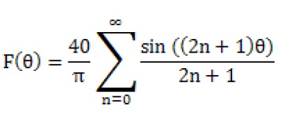 In the computer we can only use a finite number of terms in the formula, so if we sum for N terms from n =0 to n = N-1 (inclusive) we get a result that is approximately a square waveform. The larger the value of N, the better the approximation.